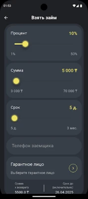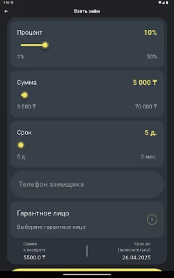Приложение предназначено для оформления сделок и микрозаймов между сторонами. Функция гаранта используется для повышения уровня доверия: он подтверждает, что поддерживает условия сделки.
