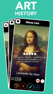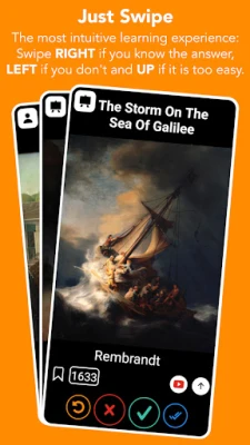 Our app leverages the latest advances in neuroscience and AI to optimize your learning efficiency. Using a system of flashcards powered by an intelligent learning algorithm, our app makes it easy to learn at your own pace and see real progress over time. Guess who is the artist of each masterpiece in a quiz until you have memorized them all.