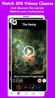 Our app is designed to help you discover and appreciate the greatest artwork from all ages, with detailed explanations of each masterpiece in videos. Our selection of paintings is hand-picked to include every painting you should know about. In no time, you will know all about the artists and masterpieces than marked history all around the world.
