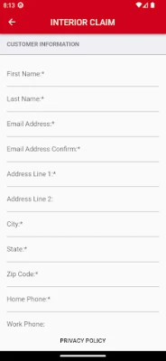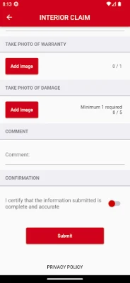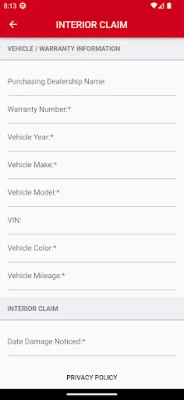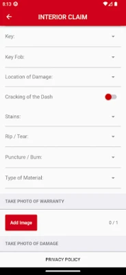 - Select from one of three claim options (Interior, Exterior or Key/Fob Claim)