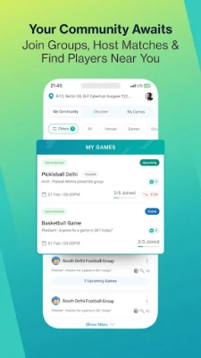 - Find, join, and play with others who share your passion for sports and build lasting relationships!