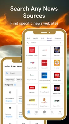 Easily navigate through top newspapers and news portals sorted by Indian cities and regional languages for a personalized news reading experience.