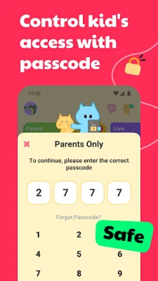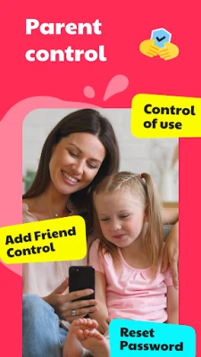 Both users must approve each other to become friends. A parental password allows parents full control over app usage.
