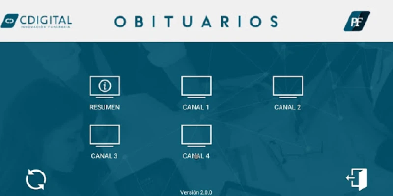Mejore la imagen de su funeraria y despliegue en pantallas el obituario diario de los servicios que se están llevando a cabo en sus salas de velación. Aplicación que permite vincular una sala de velación a un canal. El contenido del canal Ud. lo programa a su gusto y necesidades, añadiendo su logotipo, publicidad, datos del servicio, imagen del finado, frases e imágenes entre otros.