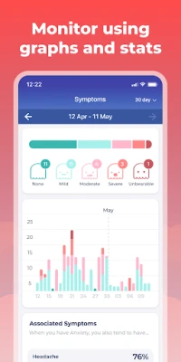 ✔️ Discover what improves & worsens your symptoms Track your medication, self-care, habits, & activities and discover how they correlate with changes in your symptoms, mood, mental health, and more.
